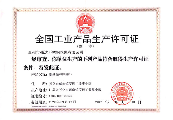 您好,歡迎訪問泰州市強達不銹鋼絲繩有限公司官網(wǎng)!